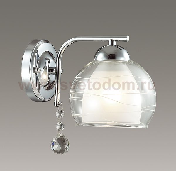 Арматура, декор: металл, хрустальная подвеска; плафон: двойное стекло (нижняя часть - матовая, верхняя - прозрачная с белым рисунком) Материал плафона
