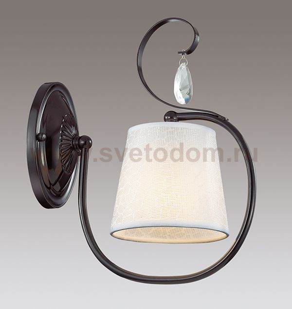 Арматура, декор: металлическая арматура украшена хрусталем; плафон: тканевый абажур Материал плафона