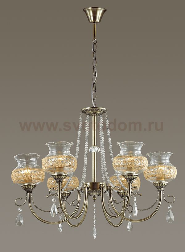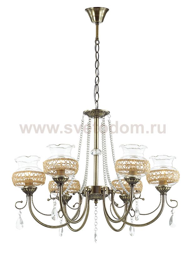 Люстра 3095/6 серии Damila оформлена в классическом стиле. Люстра состоит из прозрачных стеклянных плафонов с кружевным металлическим декором и арматуры бронзового цвета, украшенной хрусталем. Красота и деликатность - вот отличительные особенности данной модели Цоколь E14. Мощность 6x60W. Нет ламп в комплекте.