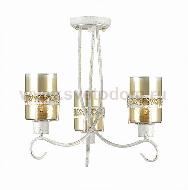 Люстра потолочная 3099/3C серии Vitelia оформлена в классическом стиле. Люстра состоит из прозрачных стеклянных плафонов с ажурным металлическим ободком и оригинальной арматуры популярного белого с золотой патиной цвета. В данной модели соединились необычные переплетения каркаса в сочетании с классикой плафонов. Цоколь E27. Мощность 3x40W. Нет ламп в комплекте.