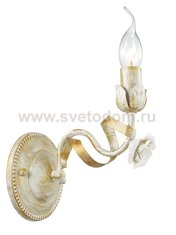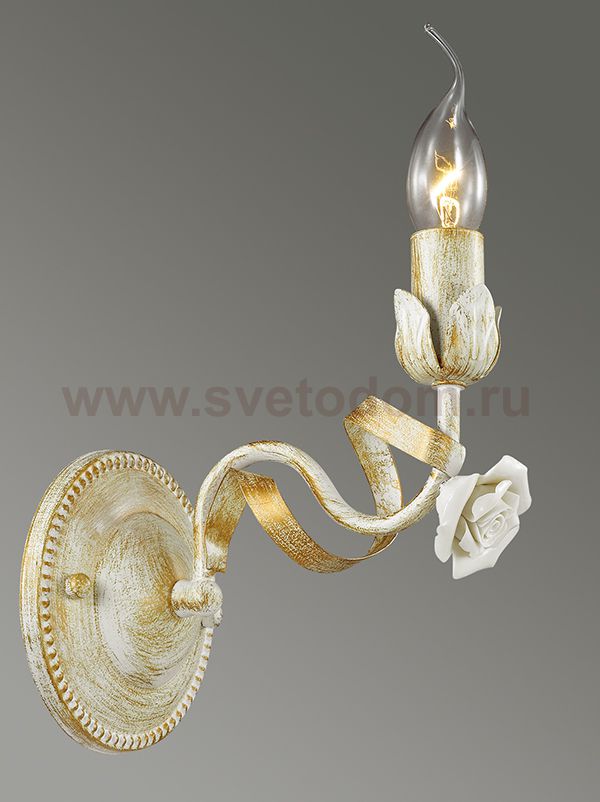 Бра 3103/1W серии Soletta оформлена в классическом стиле. Светильник состоит из арматуры белого с золотой патиной цвета, украшенной позолоченными лентами и нежными керамическими розочками. Данная модель окунет Вас в ласку, тепло и уют. Цоколь E14. Мощность 1x60W. Нет ламп в комплекте.