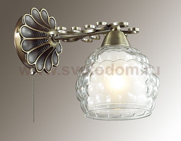 Бра 3106/1W серии Ampolla оформлена в современном стиле. Светильник состоит из двойного плафона, нижняя часть которого выполнена из матового стекла, а верхняя - из актуального объемного стекла, и арматуры бронзового цвета, украшенной ажруными металлическими элементами. Кто сказал, что классику и модерн нельзя совмещать? Данная модель своей гармоничностью опровергает это утверждение. Цоколь E14. Мощность 1x60W. Нет ламп в комплекте.