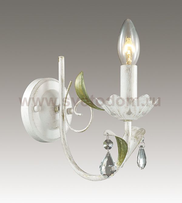 Бра 3114/1W серии Marissa оформлена в классическом стиле. Светильник состоит из арматуры белого с золотой патиной цвета, украшенной металлическим декором в виде листочков и многочисленными хрустальными подвесками. Данная модель создаст незабываемую атмосферу ласкового цветочного утра. Цоколь E14. Мощность 1x40W. Нет ламп в комплекте.