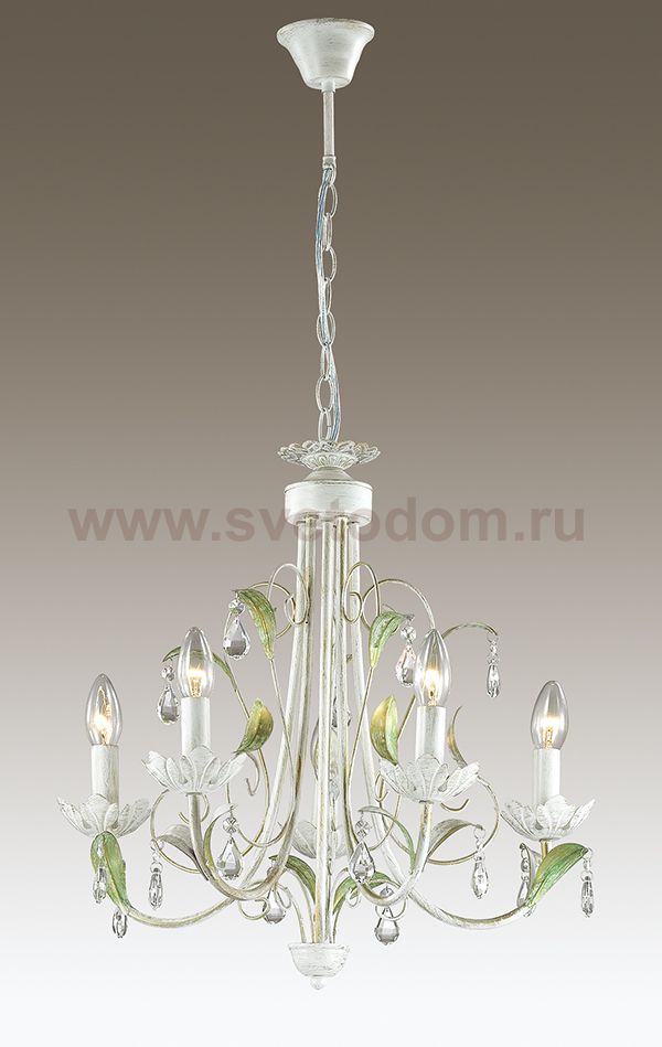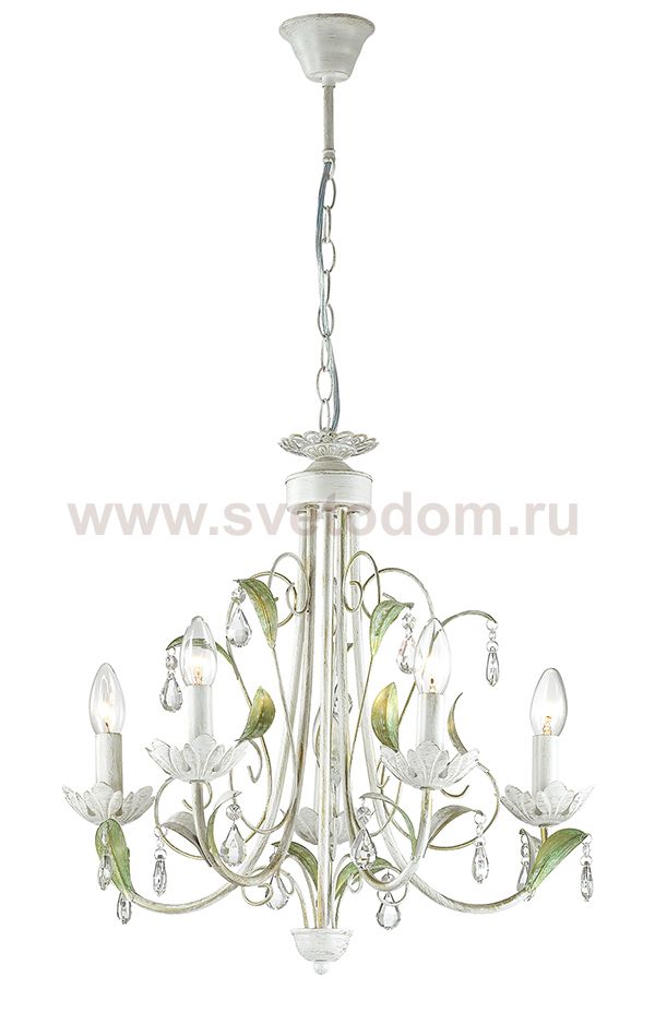 Люстра 3114/5 серии Marissa оформлена в классическом стиле. Люстра состоит из арматуры белого с золотой патиной цвета, украшенной металлическим декором в виде листочков и многочисленными хрустальными подвесками. Данная модель создаст незабываемую атмосферу ласкового цветочного утра. Цоколь E14. Мощность 5x40W. Нет ламп в комплекте.