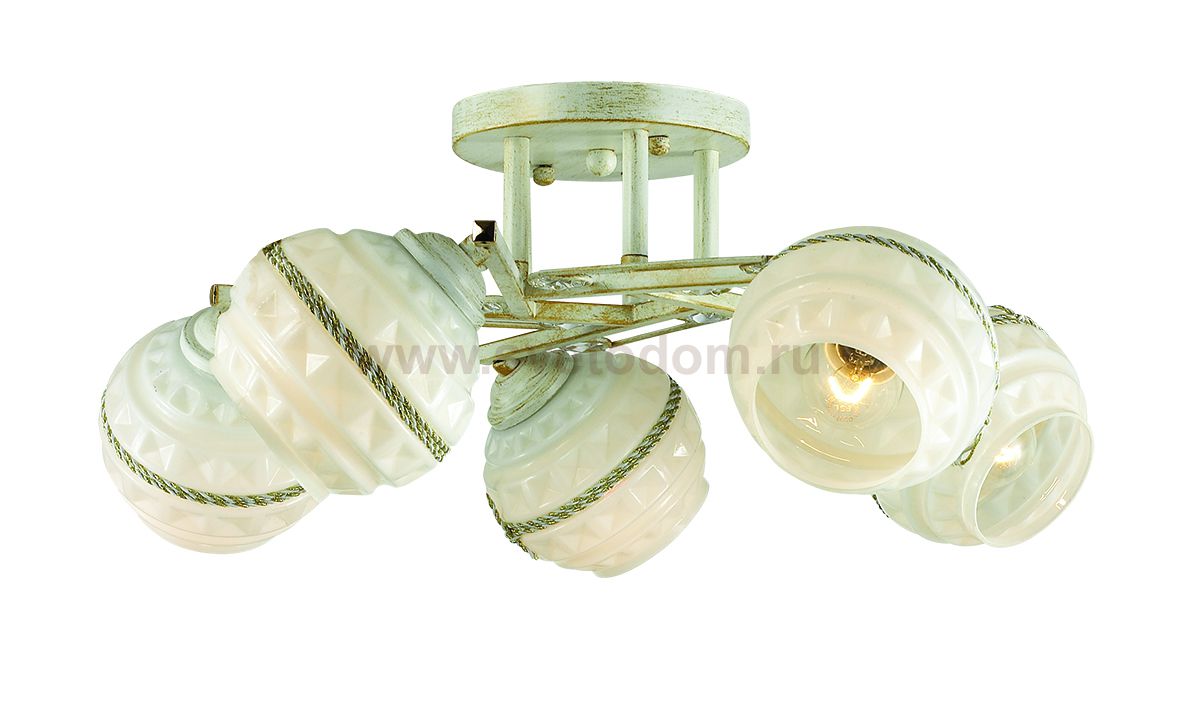 Люстра потолочная 3119/5C серии Tatina оформлена в классическом стиле. Люстра состоит из стеклянных молочных плафонов с объемным рисунком, украшенных декоративной нитью, и арматуры белого с золотой патиной цвета, декорированной металлическими элементами и хрусталем. Скромная и простая на первый взгляд, данная модель обладает неуловимым шармом, который наполнит Ваш дом уютом и теплом. Цоколь E14. Мощность 5x40W. Нет ламп в комплекте.