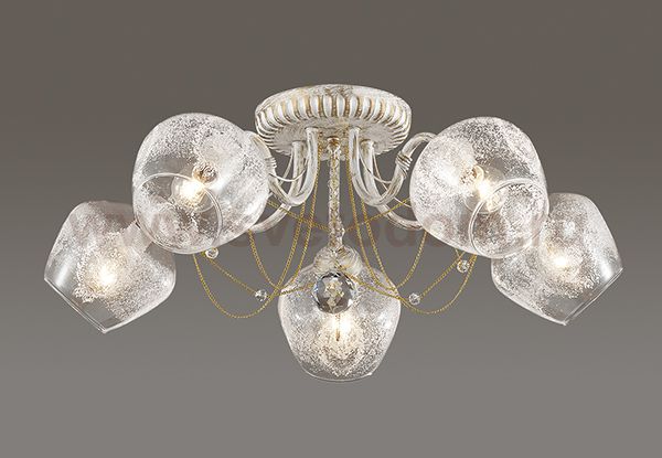 Люстра потолочная 3124/5C серии Irena оформлена в классическом стиле. Люстра состоит из прозрачных стеклянных плафонов с утонченным вензельным рисунком и арматуры белого с золотой патиной цвета. Восхитительный цвет данной модели в сочетании с обилием украшений моментально приковывают внимание. Цоколь E14. Мощность 5x40W. Нет ламп в комплекте.