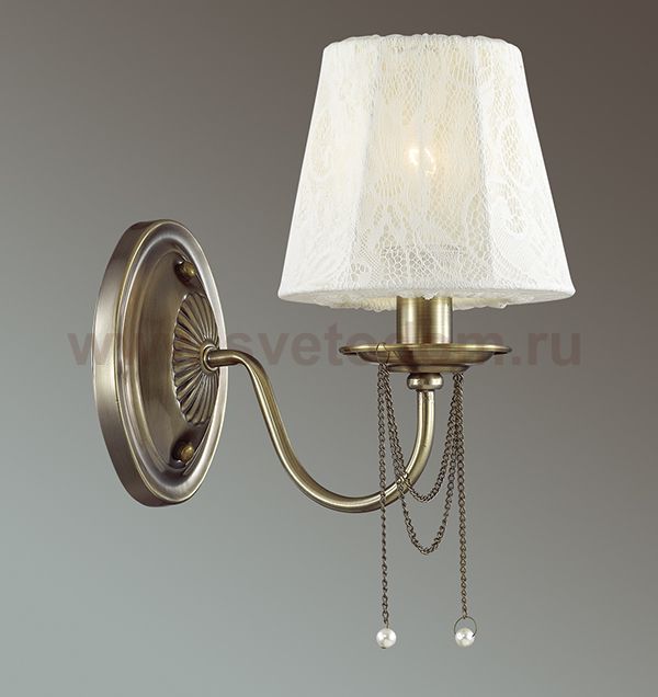 Бра 3201/1W серии Basilia оформлена в классическом стиле. Светильник состоит из абажура из органзы и бронзовой арматуры, украшенной декоративными цепочками с нежными жемчужными бусинками. Данная модель украсит Ваш дом, привнеся в него немного мягкой классики. Цоколь E14. Мощность 1x40W. Нет ламп в комплекте.