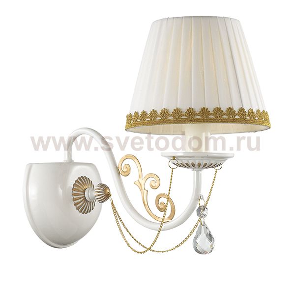 Бра 3202/1W серии Dominga оформлена в классическом стиле. Светильник состоит из абажура из органзы с ажурной тесьмой и белой арматуры, украшенной золотыми металлическими элементами, а также цепочками и подвесками из хрусталя. Данная модель привнесет нарядность и праздничность в каждый дом. Цоколь E14. Мощность 1x40W. Нет ламп в комплекте.