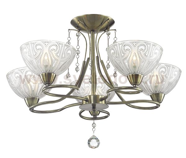 Люстра потолочная 3241/5C серии Selia оформлена в классическом стиле. Люстра состоит из объемного стеклянного плафона и нетривиальной бронзовой арматуры, декорированной актуальными цепочками с бусинками и хрустальной подвеской. Данная модель отличается оригинальной формой при сохранении канонов классической красоты. Цоколь E14. Мощность 5x60W. Нет ламп в комплекте.