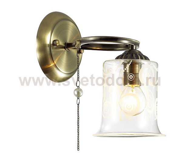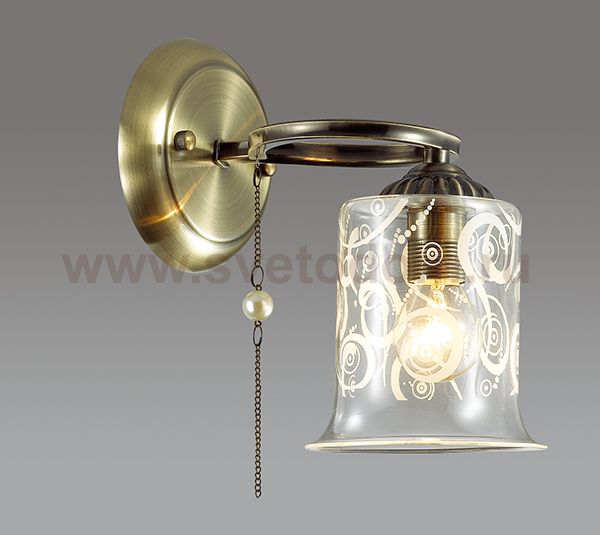Бра 3242/1W серии Otalia оформлена в классическом стиле. Светильник состоит из стеклянного плафона с вензельным рисунком и арматуры бронзового цвета, украшенной цепочкой с бусиной под жемчуг. Оригинальная форма арматуры, а также скромная элегантность цепочек позволяет назвать данную модель одной из самых интересных в коллекции. Цоколь E14. Мощность 1x60W. Нет ламп в комплекте.