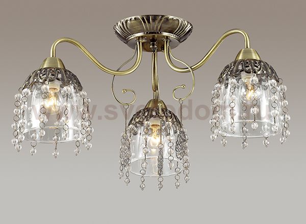 Люстра потолочная 3244/3C серии Doriana оформлена в классическом стиле. Люстра состоит из утонченных стеклянных плафонов с ажурным металлическим декором, щедро украшенных хрустальными подвесками, и классической арматуры бронзового цвета с утонченными металлическими подвесками. Данная модель являет собой пример изящества, утонченности и великолепия. Цоколь E14. Мощность 3x60W. Нет ламп в комплекте.