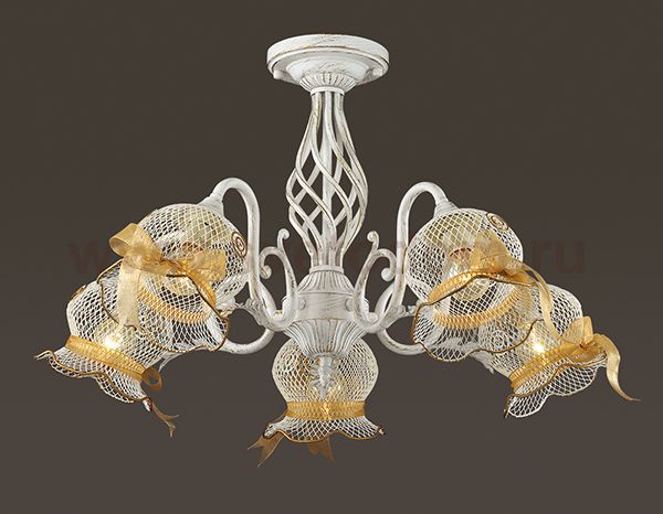 Люстра потолочная 3250/5C серии Barbissa оформлена в классическом стиле. Люстра состоит из металлических сетчатых абажуров, украшенных декоратиыной ленточкой и арматуры классического белого цвета, слегка декорированной золотой патиной. Данная модель прекрасно подойдет как для гостиной, так и для детской комнаты. Цоколь E14. Мощность 5x60W. Нет ламп в комплекте.