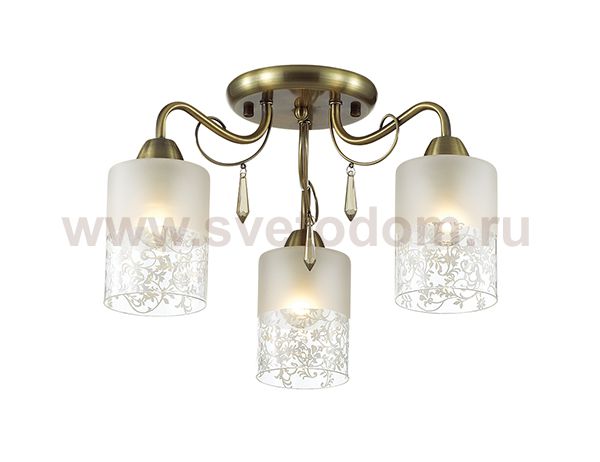 Люстра потолочная 3262/3C серии Imani оформлена в классическом стиле. Люстра состоит из стеклянных плафонов, нижняя часть которых украшена мягким вензельным рисунком, и арматуры цвета бронзы с подвесками из хрусталя. Данная модель обладает необъяснимой мягкостью и нежностью, что всегда будет блаоприятно сказываться на Вашем настроении. Цоколь E14. Мощность 3x60W. Нет ламп в комплекте.