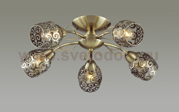 Люстра потолочная 3264/5C серии Berenis оформлена в классическом стиле. Люстра состоит из ажурных металлических плафонов и арматуры бронзового цвета. В данной модели роскошь соседствует со сдержанностью, что и делает ее особенно элегантной. Цоколь E14. Мощность 5x60W. Нет ламп в комплекте.