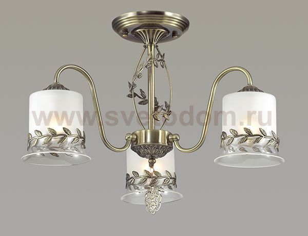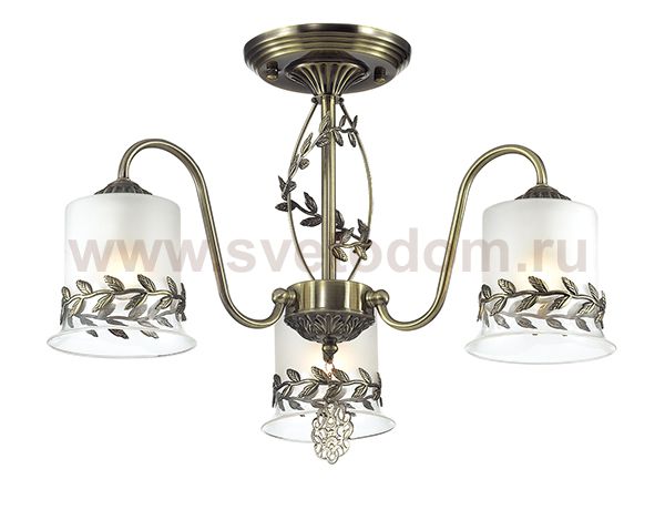 Люстра потолочная 3283/3C серии Paolina оформлена в классическом стиле. Люстра состоит из стеклянных плафонов с металлическим окаймлением в виде оливковой ветки, что выгодно перекликается с похожим декором на арматуре бронзового цвета. Данная модель перенесет Вас в теплую, улыбчивую и ласковую Грецию. Цоколь E27. Мощность 3x60W. Нет ламп в комплекте.