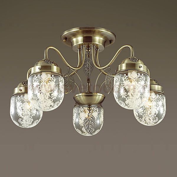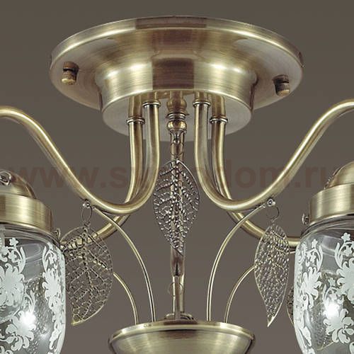 Серия AFEMI примечательна оригинальной формой стеклянного плафона с растительным орнаментом. Светильник декорирован ажурными листками из металла, на верхних чашах светильника нанесен рельефный декор.