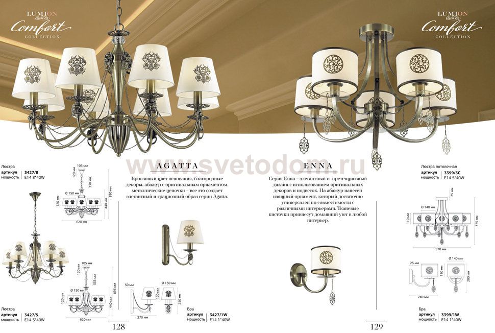 Бронзовый цвет основания, благородные декоры, абажур с оригинальным орнаментом, металлические цепочки все это создает элегантный и грциозный образ серии Agatta.
