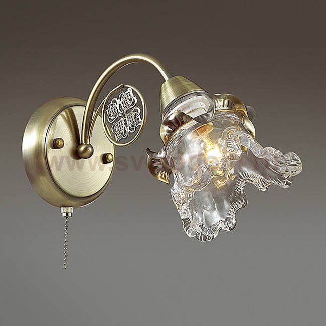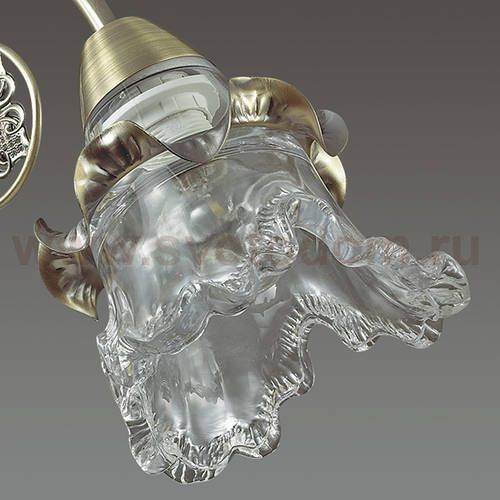 Серия Eloisa примечательна роскошным прозрачным стеклянным плафоном, прекрасно сочетающимся с бронзой основания. Светильник декорирован эффектным цветочным элементом.