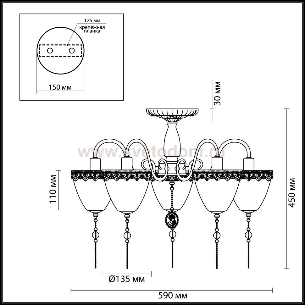 Арматура, декор: металл, цепочки, хрусталь; плафон стекло, металл Материал плафона