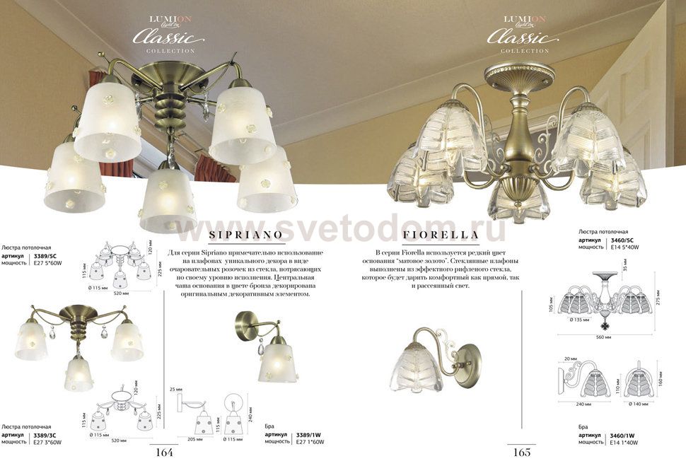 В серии Fiorella используется редкий цвет основания - "матовое золото". Стеклянные плафоны выполнены из эффектного рифленого стекла.