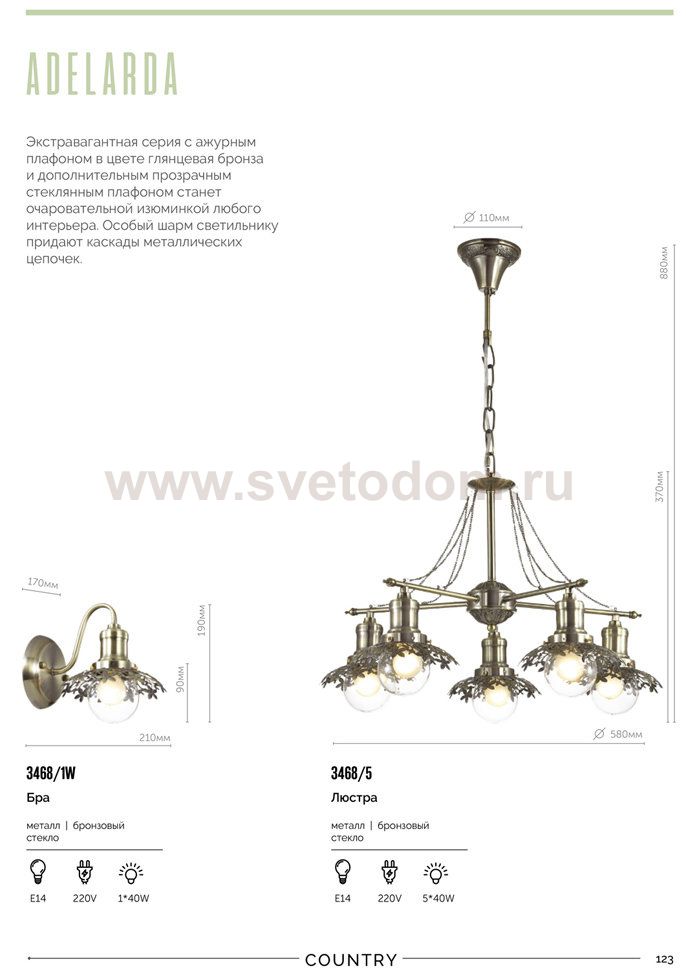 Храктерная особенность артикула 3468/1W: Экстравагантная серия с ажурным плафоном в цвете глянцевой бронза и дополнительным прозрачным стеклянным плафоном станет очаровательной изюминкой любого интерьера.