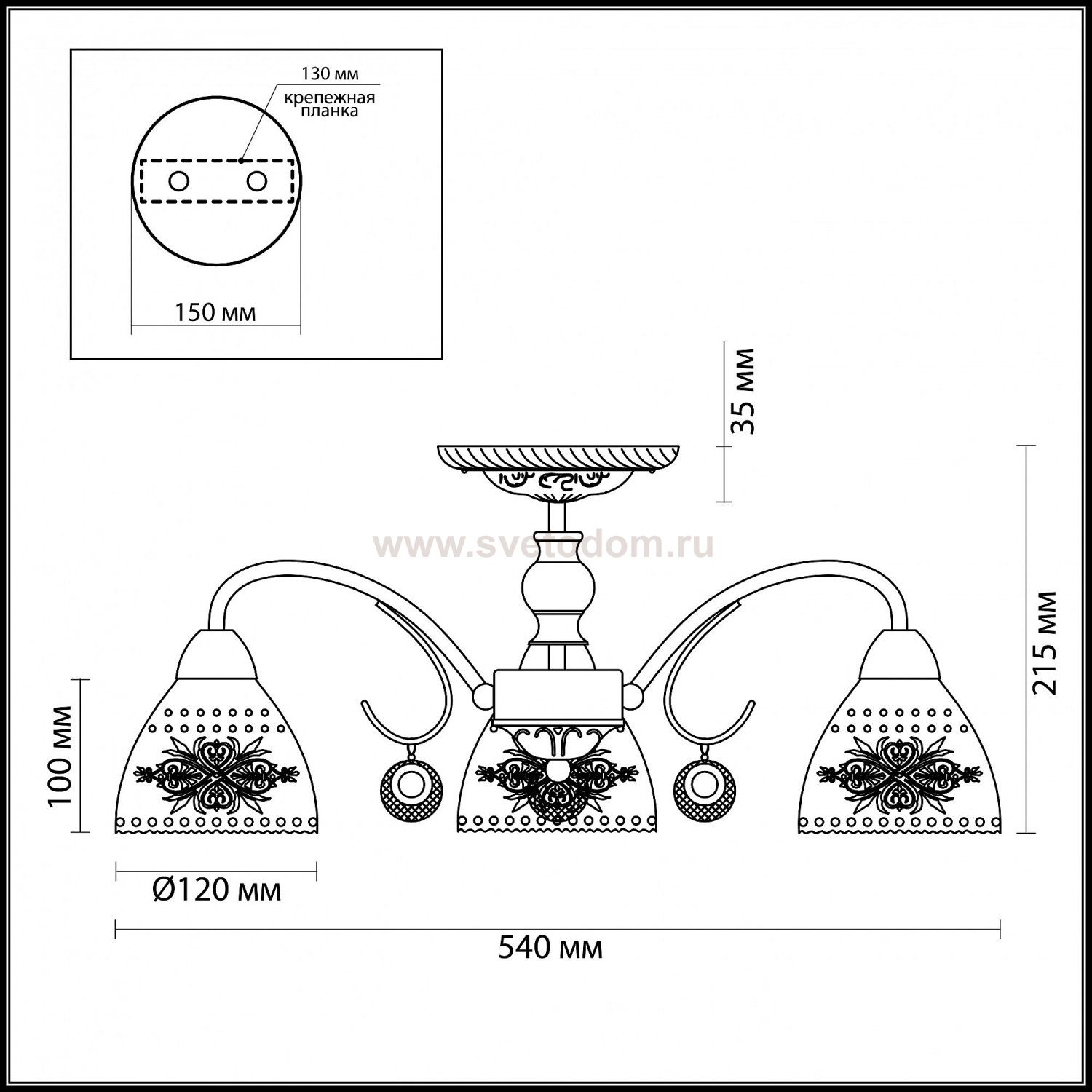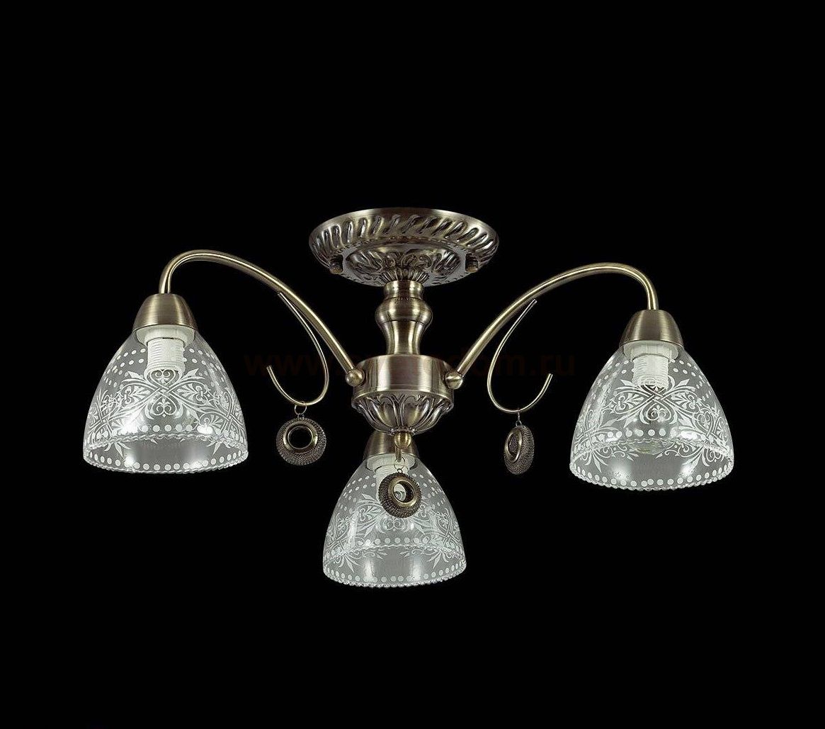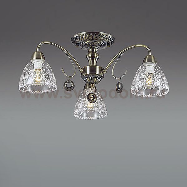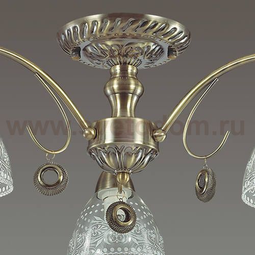 Изящный светильник с оригинальным и изящно декорированным прозрачным плафоном, который прекрасно сочетается с арматурой цвета "глянцевая бронза". Рожки люстры украшены оригинальными подвесками в виде металлической сеточки, гармонирующими со всем обликом светильника.