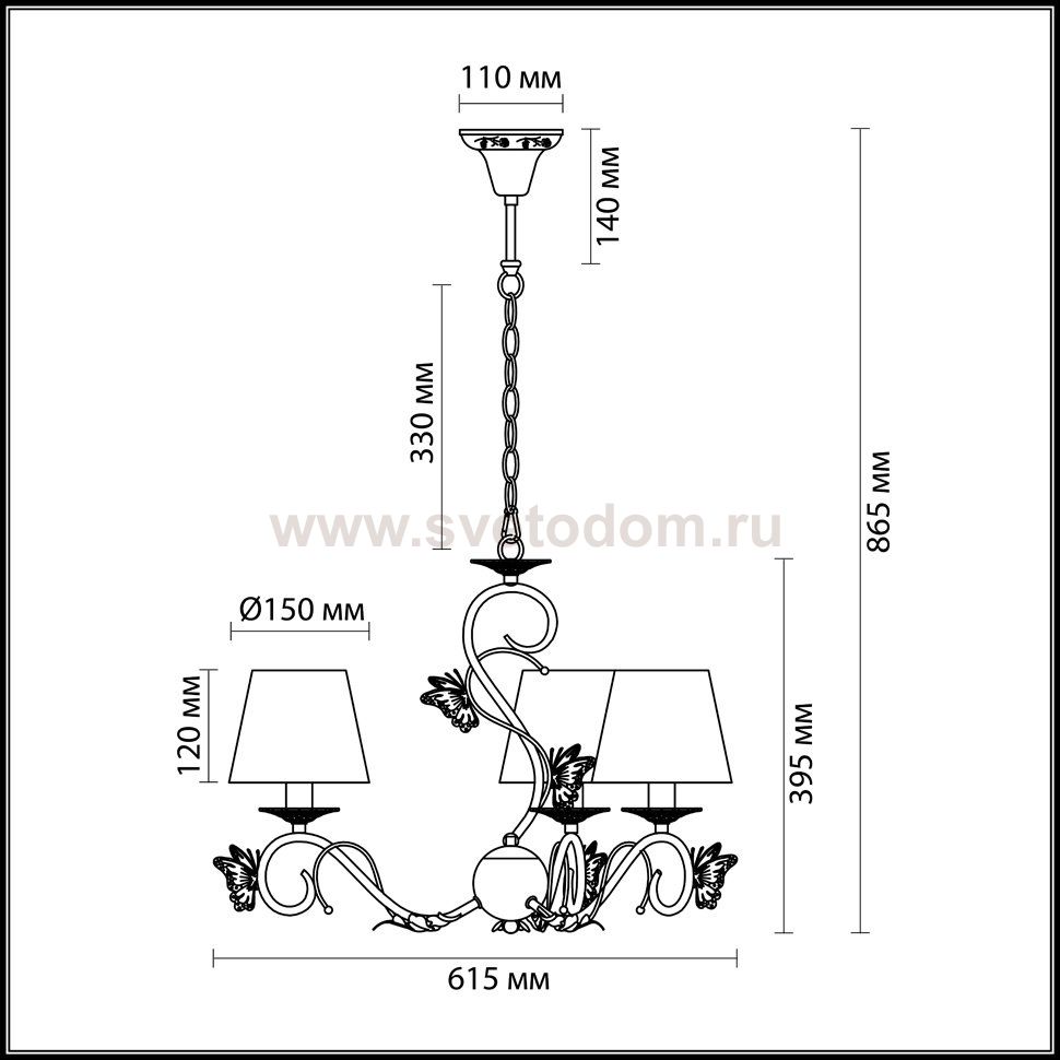 Арматура, декор: металл, украшенный декоративными бабочками из металла; абажур: ткань Материал плафона