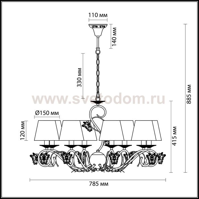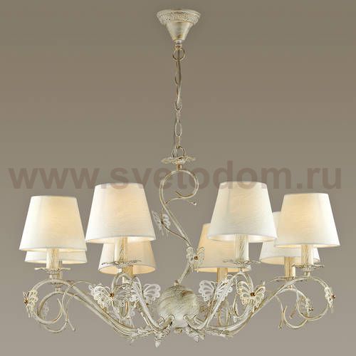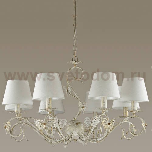 Арматура, декор: металл, украшенный декоративными бабочками из металла; абажур: ткань Материал плафона