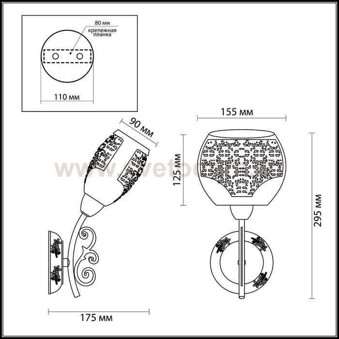 Арматура, декор: металл, ажурные металлические элементы; плафон: металл Материал плафона