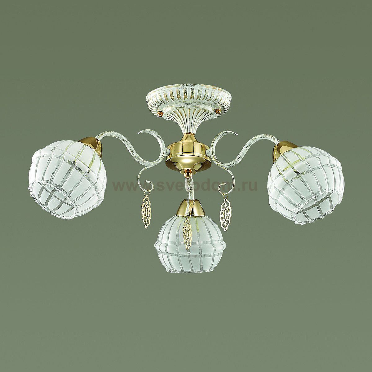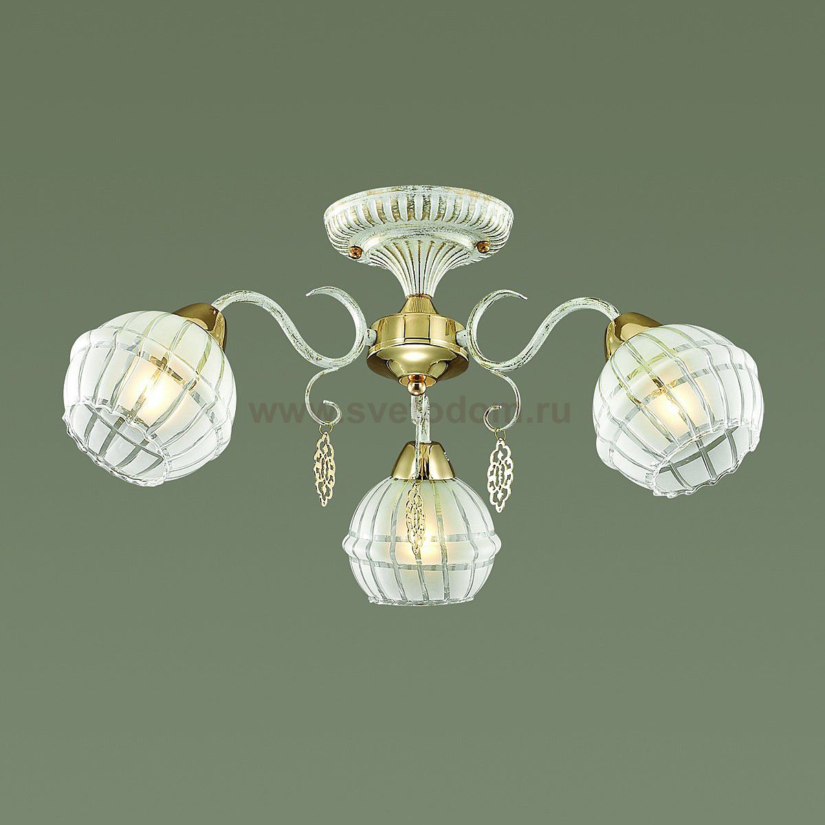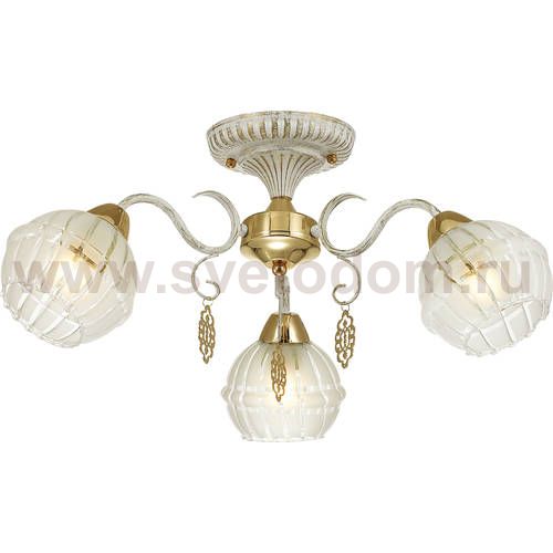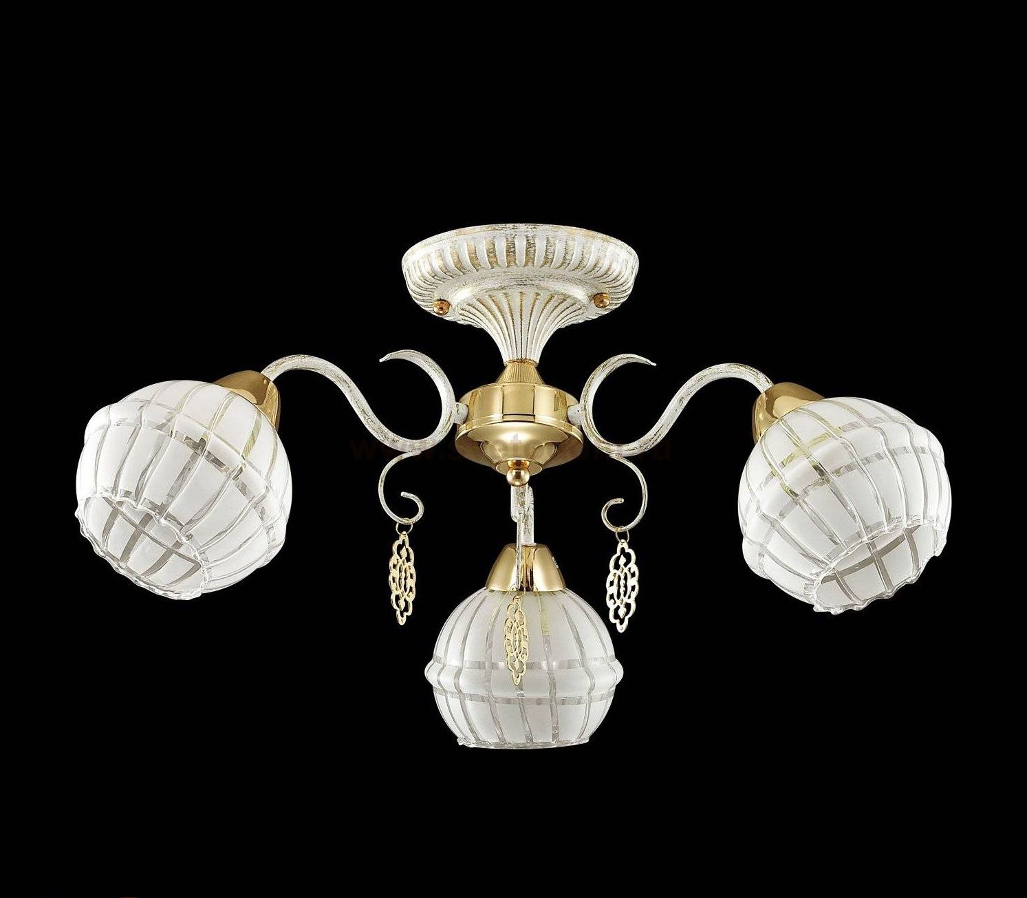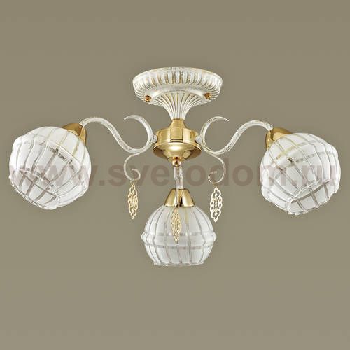 Изысканная серия Bellaromana смотрится свежо и романтично, благодаря нежному белому цвету с эффектной золотой патиной, которой покрыта арматура светильника. Плафоны из красивейшего белого стекла с рисунком. Светильник также украшен золотыми элементами и изящными подвесками, так идеально совпадающими по тону с золотой патиной