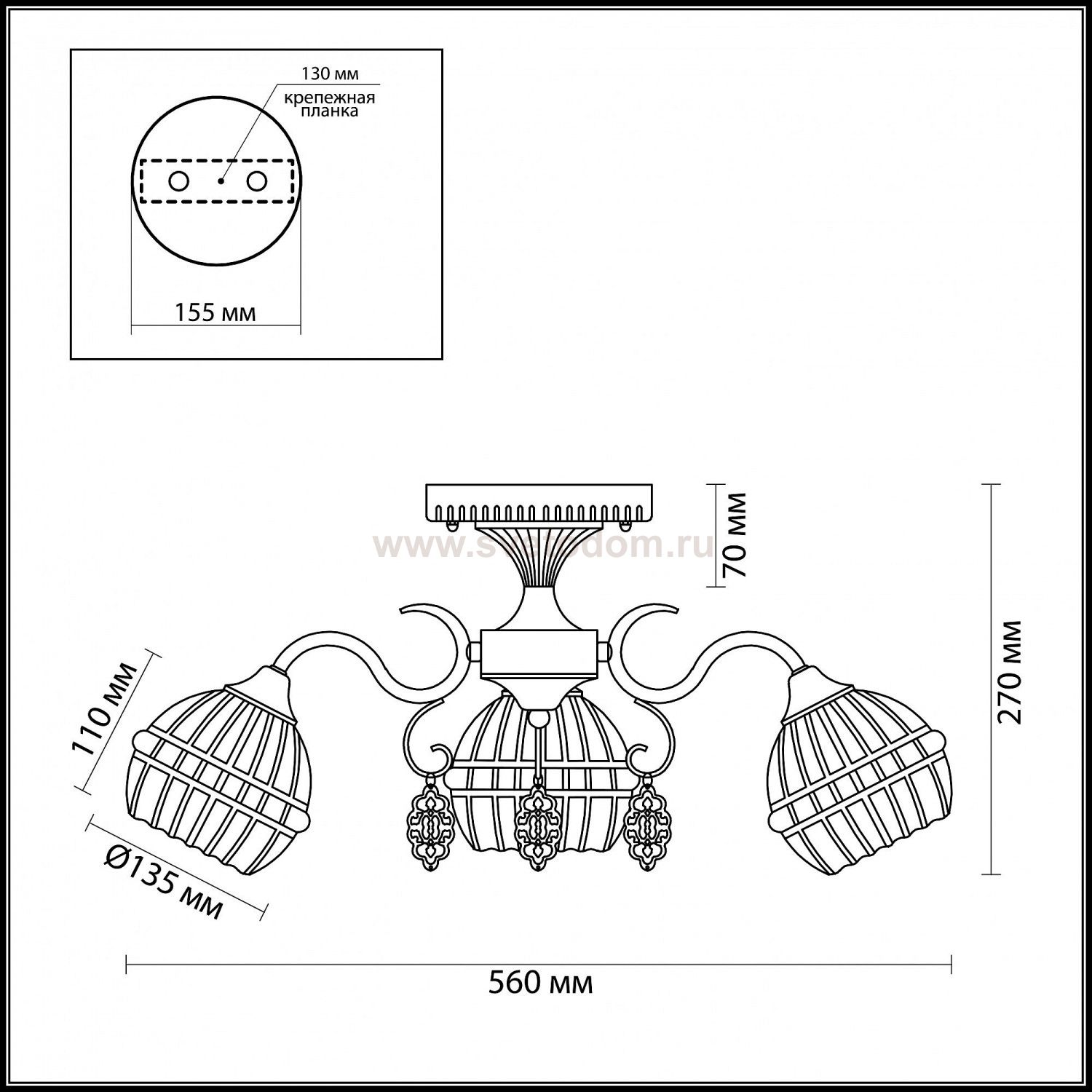 Арматура, декор: металл; плафон: стекло Комментарий