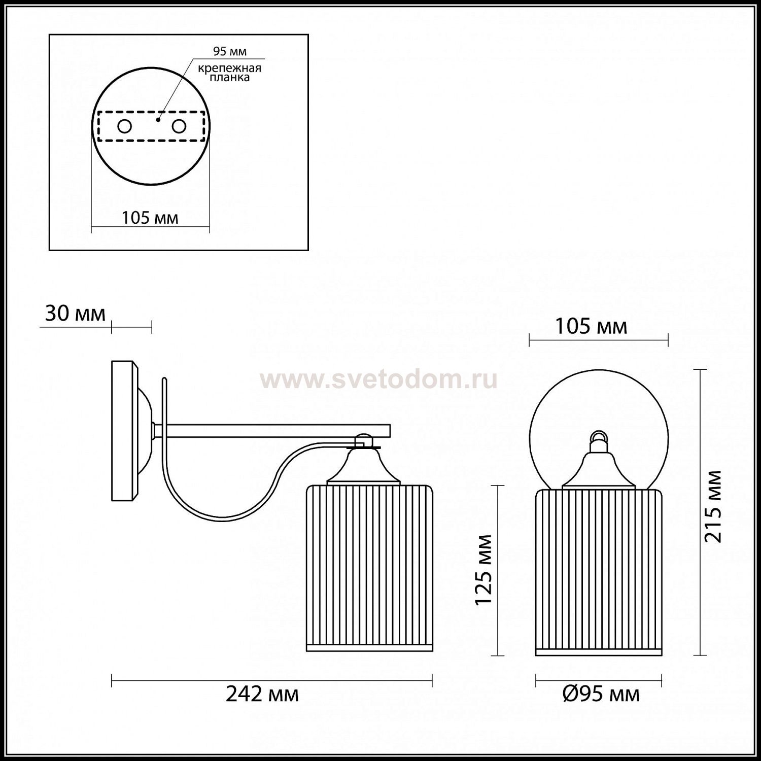 Арматура, декор: металл; плафон: стекло Материал плафона