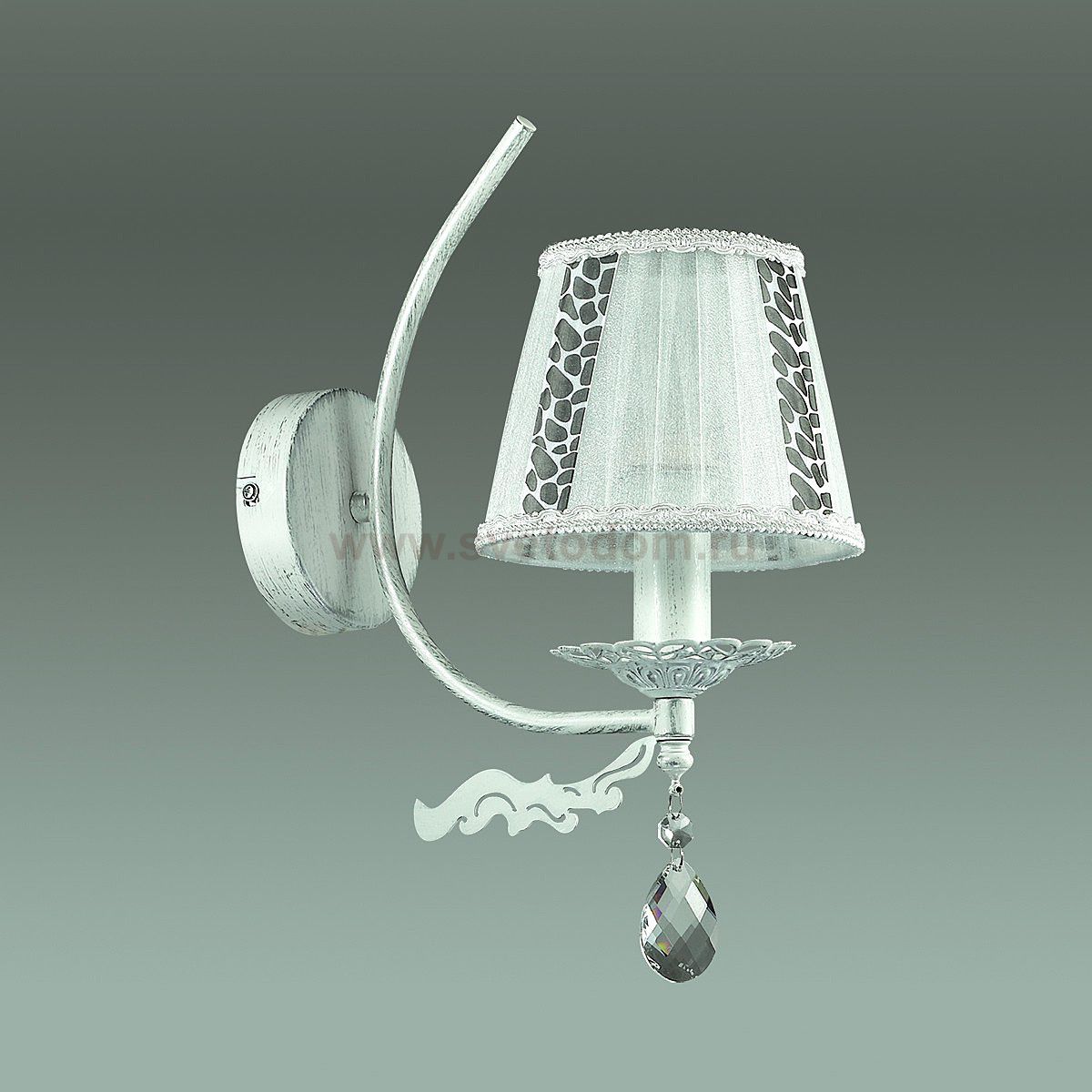 Арматура, декор: металл, хрусталь; абажур: ткань Материал плафона