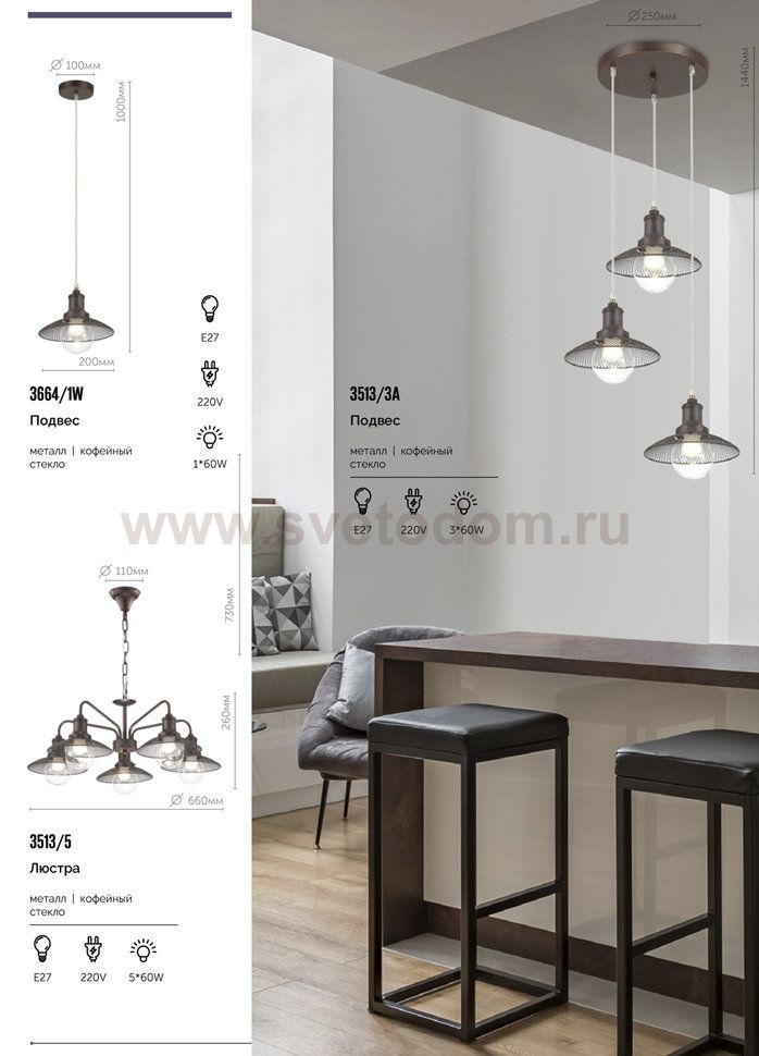3513/3A LOFTI LN18 211 кофейный Светильник подвесной E27 3*60W 220V LUDACRIS Штрих-код