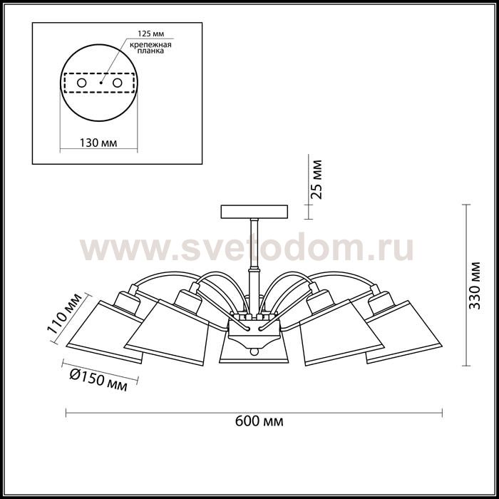 Арматура, декор: металл; абажур: ткань Материал плафона
