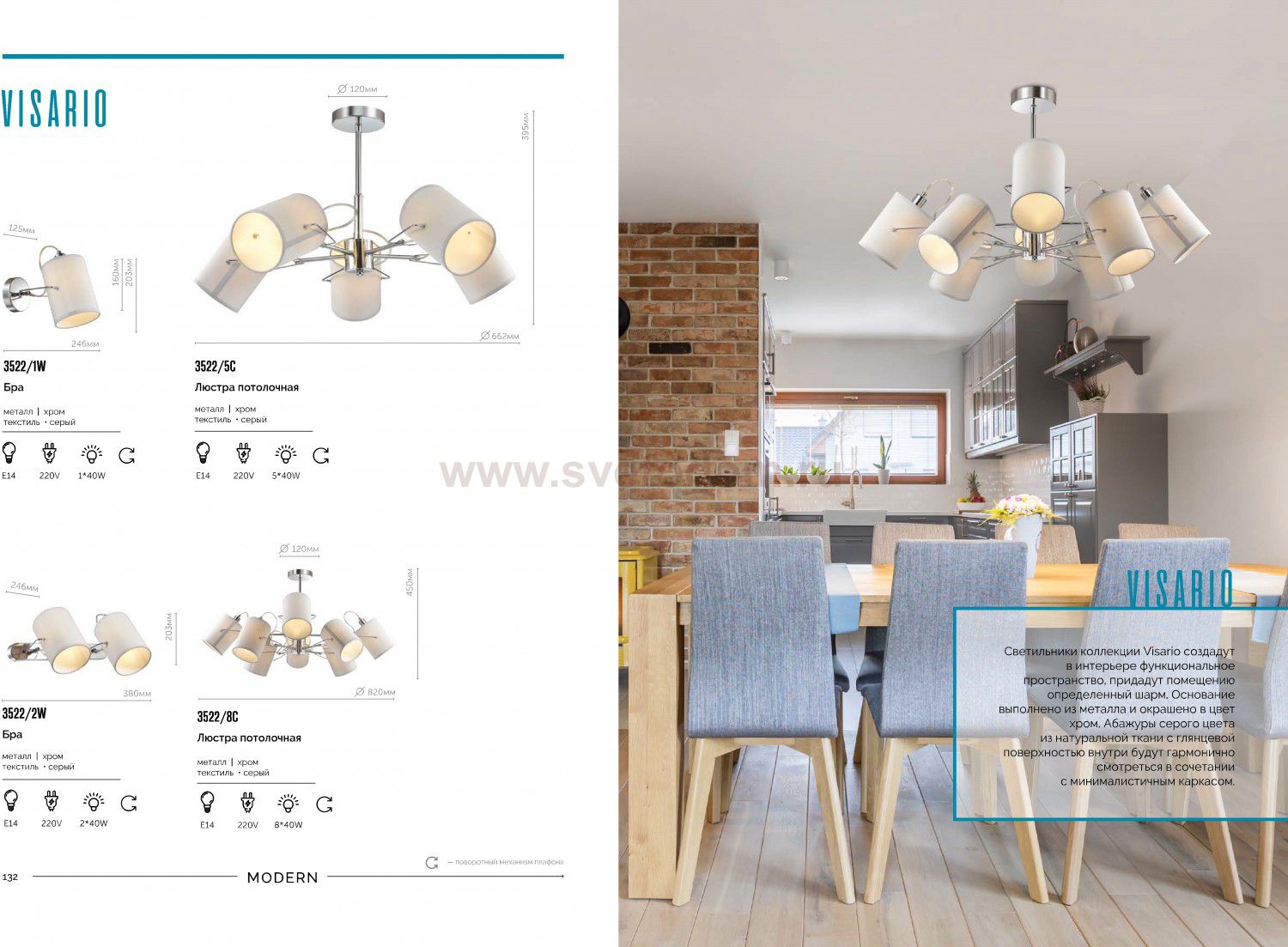 Светильники линии Visario создадут в интерьере функциональное пространство, придадут помещению определенный шарм. Основание выполнено из металла и окрашено в цвет хром. Абажуры серого цвета из натуральной ткани с глянцевой поверхностью внутри будут гармонично смотреться в сочетании с минималистичным каркасом.