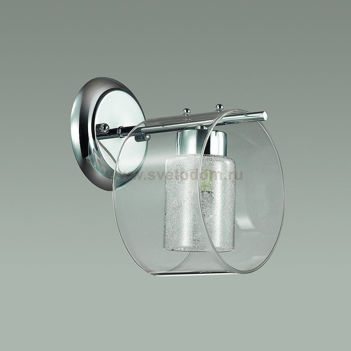 Серия Vetrosana выполнена из металла цвета хром и двойного плафона из прозрачного стекла и стекла с хрустальной крошкой, что обеспечивает яркий, и в то же время мягкий, рассеивающий свет. Светильник идеально впишется в любой интерьер