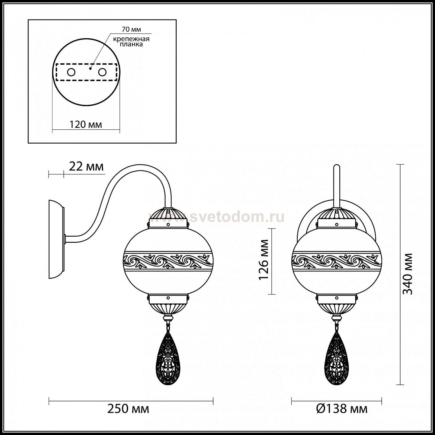 Арматура, декор: металл; плафон, декор: стекло, металлический декор Материал плафона
