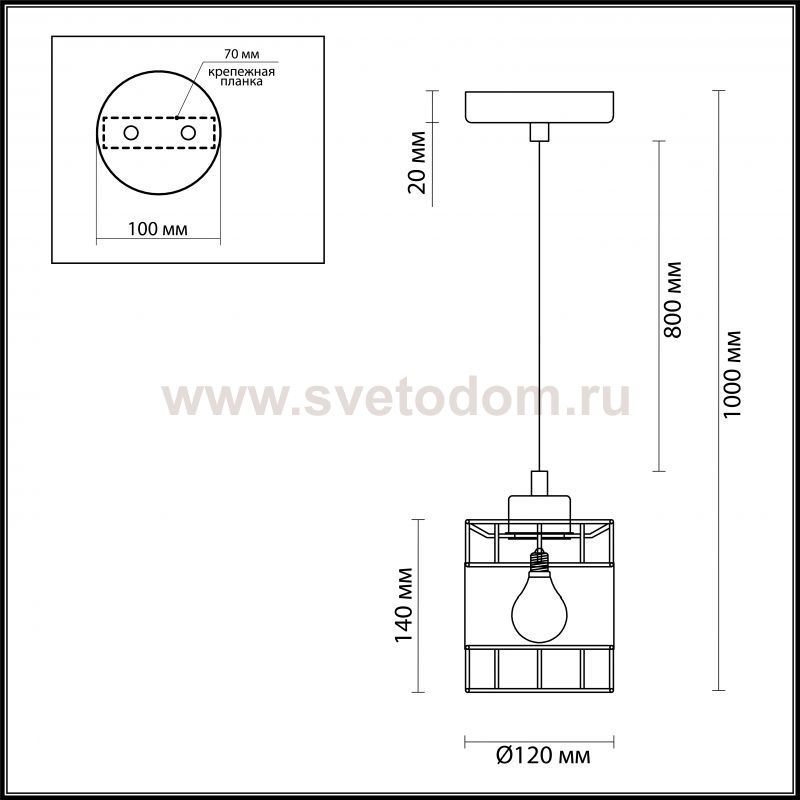 1000 Высота абажура, мм