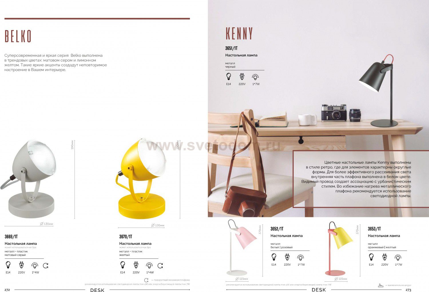3670/1T MODERNI LN18 270 жёлтый Настольная лампа E14 4W 220V BELKO Штрих-код