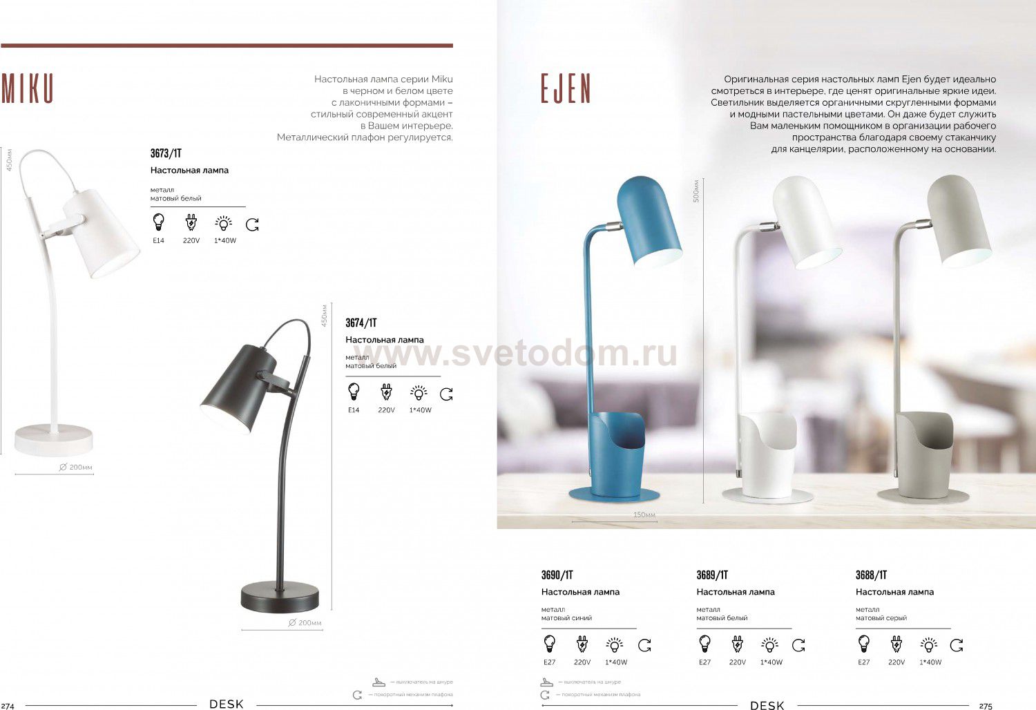 3674/1T DESK LN18 253 матовый чёрный Настольная лампа E14 40W 220V MIKU Штрих-код