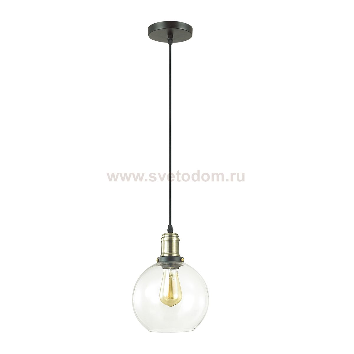 Подвес линии Kit с плафоном из прозрачного стекла с декоративным элементом в цвете античной бронзы - модный и эффектный акцент в интерьере лофт или винтаж.