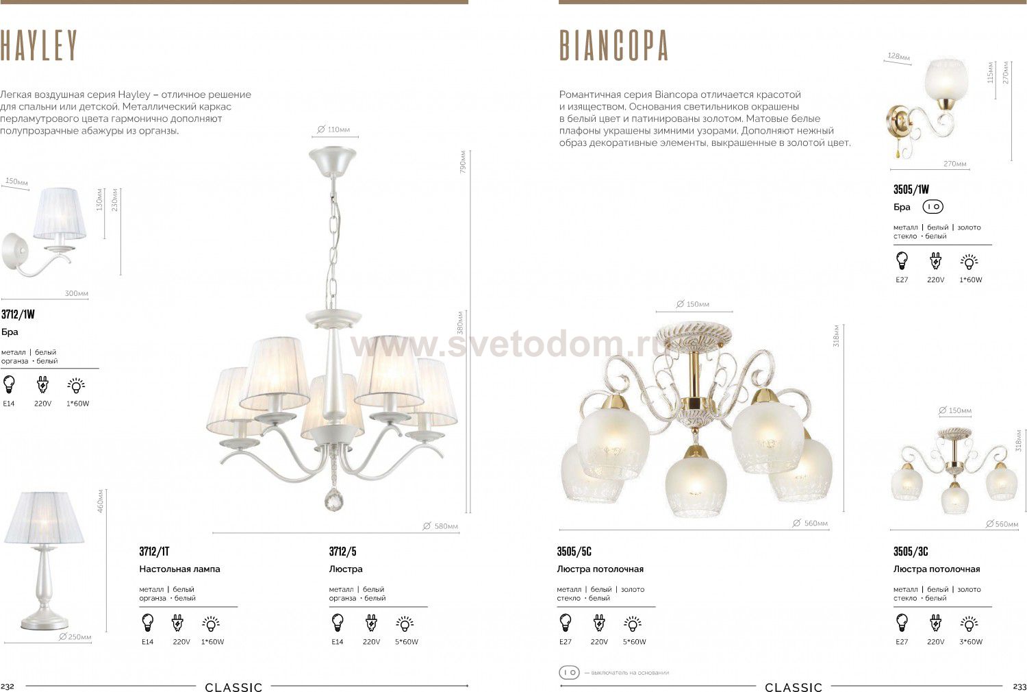 3712/1T NEOCLASSI LN19 105 белый Настольная лампа E14 1*60W 220V HAYLEY Штрих-код