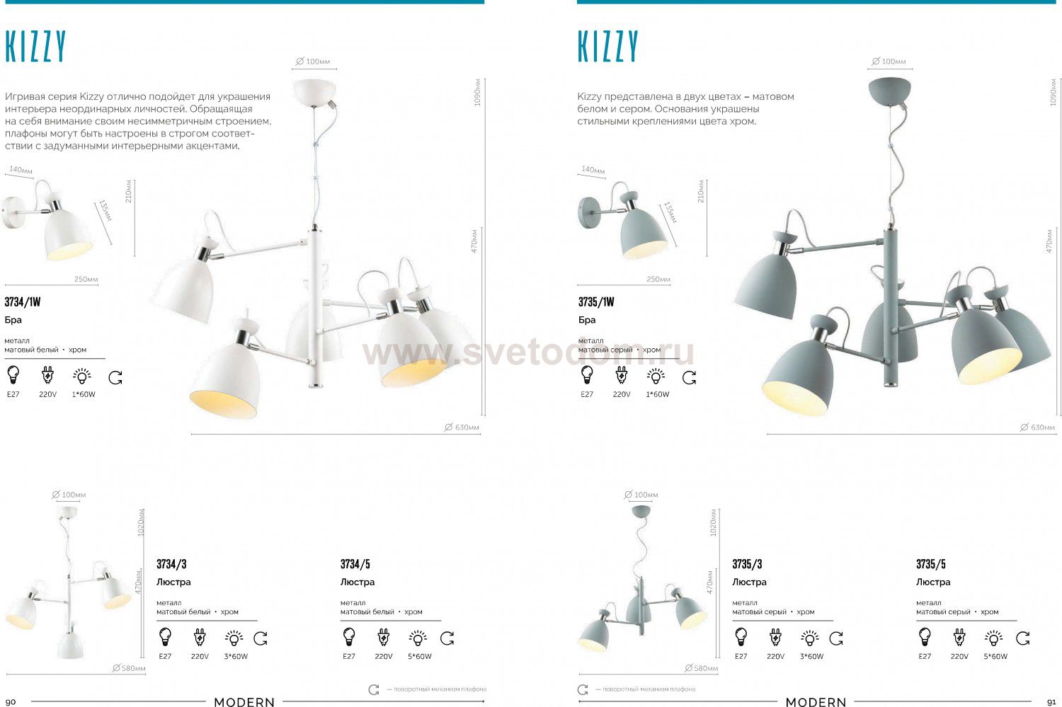 3735/3 MODERNI LN19 141 серый Люстра E27 3*60W 220V KIZZY Штрих-код