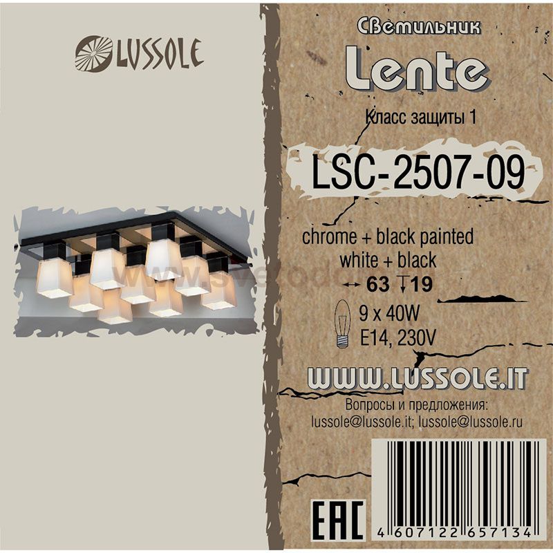 Итальянская люстра LUSSOLE LSC-2507-09 LENTE выполнена в классических черно-белых цветах, и обращает на себя внимание! Квадратная геометрическая форма повторяется в креплениях и плафонах, создавая совершенный гармоничный образ, и прекрасно подойдет в любой современный интерьер. Девять лампочек освещают пространство на расстоянии до двадцати четырех квадратных метров, поэтому удачней всего люстра впишется в просторное помещение, в котором будет броской деталью! |
