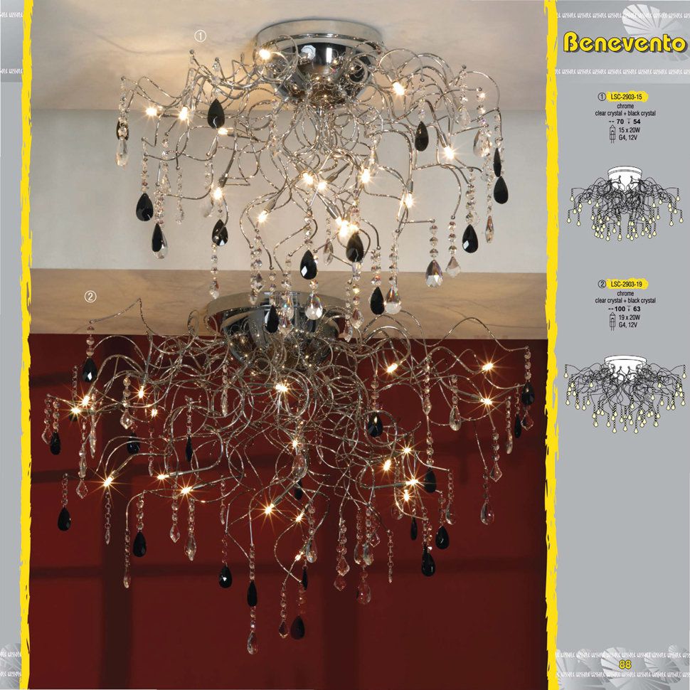 Изысканная люстра LUSSOLE LSC-2903-15 BENEVENTO напоминает своей формой заснеженный сказочный куст. Красиво сочетаются между собой крупные подвески из прозрачного и черного хрусталя. Пятнадцать лампочек создают освещение на расстоянии до двадцати квадратных метров, и благодаря низкому потолочному креплению, почти вплотную примыкающему к потолку, люстра идеально подойдет для освещения комнаты с невысокими потолками. |