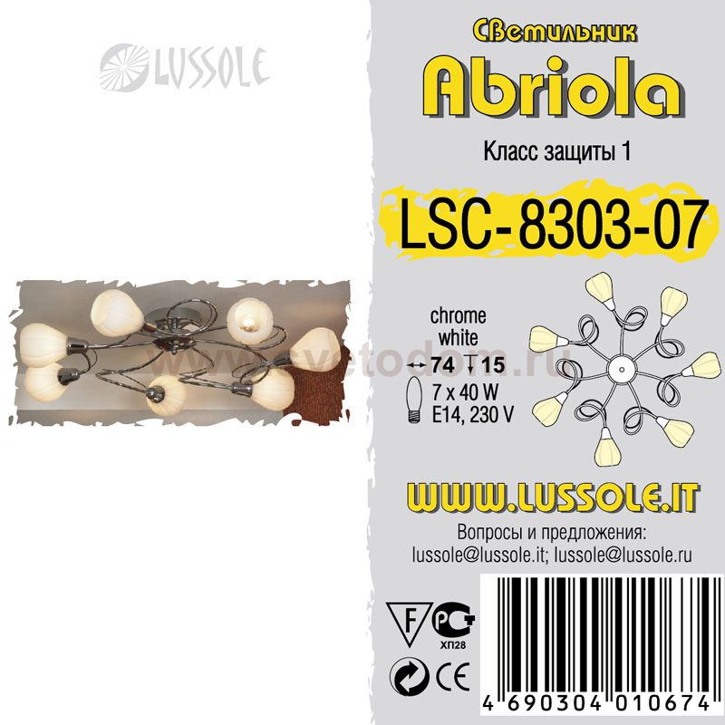 Компания «Светодом» предлагает широкий ассортимент люстр от известных производителей. Представленные в нашем каталоге товары выполнены из современных материалов и обладают отличным качеством. Благодаря широкому ассортименту Вы сможете найти у нас люстру под любой интерьер. Мы предлагаем как классические варианты, так и современные модели, отличающиеся лаконичностью и простотой форм. Стильная люстра Lussole LSC-8303-07 станет украшением любого дома. Эта модель от известного производителя не оставит равнодушным ценителей красивых и оригинальных предметов интерьера. Люстра Lussole LSC-8303-07 обеспечит равномерное распределение света по всей комнате. При выборе обратите внимание на характеристики, позволяющие приобрести наиболее подходящую модель. Купить понравившуюся люстру по доступной цене Вы можете в интернет-магазине «Светодом». |