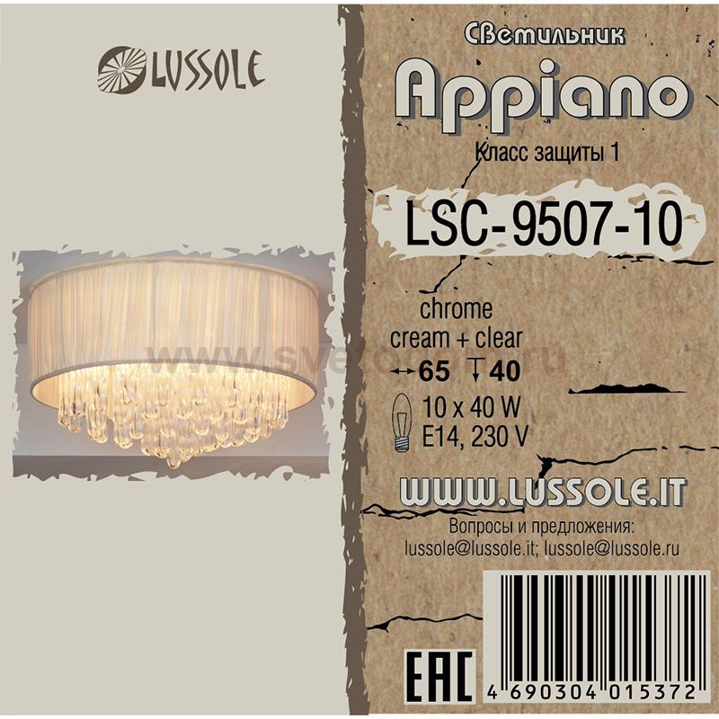 66 Отзывы Люстра Lussole LSC-9507-10 AppianoПока нет отзывов об этом товаре, напишите и он обязательно появится после модерации! Оставить свой отзывПохожие товары Другие товары магазина Фото