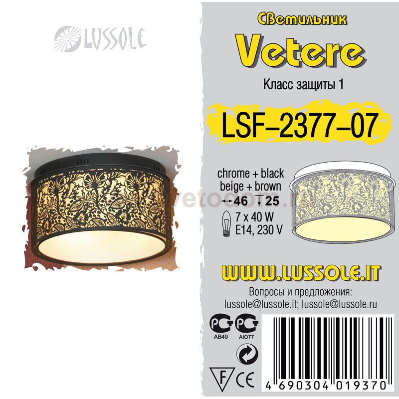 Компания «Светодом» предлагает широкий ассортимент люстр от известных производителей. Представленные в нашем каталоге товары выполнены из современных материалов и обладают отличным качеством. Благодаря широкому ассортименту Вы сможете найти у нас люстру под любой интерьер. Мы предлагаем как классические варианты, так и современные модели, отличающиеся лаконичностью и простотой форм. Стильная люстра Lussole LSF-2377-07 станет украшением любого дома. Эта модель от известного производителя не оставит равнодушным ценителей красивых и оригинальных предметов интерьера. Люстра Lussole LSF-2377-07 обеспечит равномерное распределение света по всей комнате. При выборе обратите внимание на характеристики, позволяющие приобрести наиболее подходящую модель. Купить понравившуюся люстру по доступной цене Вы можете в интернет-магазине «Светодом». |