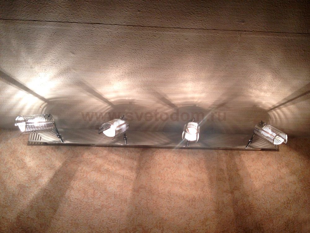 Этот светильник имеет четыре плафона, расположенных в виде прямой линии, что позволяет установить его практически в любых местах, например, вдоль стеклянной полки, или вдоль настенного зеркала. Благодаря поворотному механизму-споту, вы можете направить лучи света в разные стороны и регулировать освещение, делая его более сосредоточенным или рассеянным. Его минималистичная металлическая конструкция идеально подходит к интерьеру в стиле «хай-тек». |